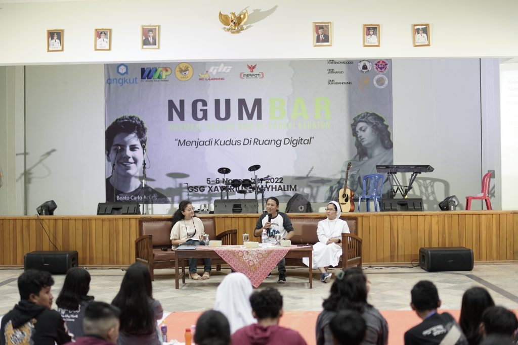 Orang Muda Katolik (OMK) merupakan masa depan dan masa sekarang Gereja, khususnya sebagai pewarta Kabar Gembiara Injil di dunia mereka, khususnya di ruang-ruang virtual. Pada 10 Oktober 2020, Paus Fransiskus menobatkan anak muda Katolik bernama Carlo Acutis dengan gelar beato, artinya “yang terberkati”. Orang kudus milenial ini pula yang mempopulerkan istilah “Ekaristi adalah jalan tol menuju surga”. Fenomena Carlo Acutis, milenial plus orang kudus, menjadi ispirasi bagi OMK pula untuk memperjuangkan kekudusan di dalam hidup mereka. Menyadari peran krusial orang muda sebagai pewarta injil, maka diadakannya kegiatan NGUMBAR (NGUMpul BAReng OMK Se-Paroki Kedaton) yang diselenggarakan pada hari Sabtu dan minggu, 05-06 November 2022, di GSG Xaverius Way Halim, Bandar Lampung. Acara ini bertujuan mengajak OMK menjadi pribadi beriman teguh, semangat dalam menghadapi tantangan hidup, dan aktif dalam kehidupan menggereja di era digital. Acara ini dikemas menarik dengan tema “Menjadi Kudus Diruang Digital”. Kegiatan Ngumbar ini dihadiri 178 peserta yang berasal dari Stasi Kedaton, Stasi Way Kandis, Stasi Natar, Stasi Sukabandung, Stasi Kresno Widodo, Stasi Jatiharjo, dan Stasi Punggur. Hari pertama kegiatan diawali registrasi sejak pukul 15.30-16.30 WIB dengan menuliskan nama serta kontingen dari mereka berasal pada nametag yang disediakan panitia. Setelah itu dilanjutkan acara open ceremony dimana para peserta berkumpul di halaman depan untuk membentuk kelompok sesuai dari stasi mereka berasal, kemudian setiap stasi masuk ke aula utama . Kegiatan ini tidak hanya dihadiri OMK, para suster yunior dari Kongregasi Suster-Suster Belaskasih dari Hati Yesus Yang Mahakudus (HK) juga ambil bagian dalam acara ini. “Saya sangat bahagia bisa bertemu OMK yang sebanyak ini, semoga dengan adanya kegiatan ini menjadi awal atau era baru OMK untuk bangkit menjadi kudus di zaman era digitalisasi ini, dan juga dapat mengobarkan semangat kebersamaan OMK” kata Sr. Rachel, HK sembari menuliskan nama di nametag. Acara dibuka secara simbolis oleh Pastor Paroki Kedaton, yang diwakili oleh RD. Lukas Radhitya Christianto dengan pemukulan gong didampingi Thomas Julio Bayu Pratama sebagai ketua pelaksana dan Robertus Zidane sebagai Ketua OMK St. Yohanes Rasul Kedaton. Ketua panitia, Thomas Julio Bayu Pratama, menuturkan tentang acara ini yang sudah direncanakan jauh-jauh hari sebelumnya. “Acara ini sudah direncanakan 1 bulan yang lalu, dan baru bisa terlaksana bulan november ini, dengan persiapan hanya 7 hari, acara ini menjadi awal dimana kaum muda bisa dengan bijak dizaman revolusi 5.0 ini menggunakan dan memanfaatkan beragam inovasi dan teknologi digital dalam berbagai bidang.”, uangkapnya. Peserta dimasukkan dalam 15 kelompok , yaitu kelompok Alfa, Omega, Salib, Piala, Sibori, Gong, Tabernakel, Alkitab, Harfa, Patena, Roti, Anggur, Lonceng, Lilin, Merpati. Kemudian mereka dipersilahkan untuk saling berkenalan dengan tujuan agar mereka semakin akrab dan bersosialisasi satu sama lain. Acara pembuatan yel-yel setiap kelompok mengawali dinamika pembuka, lalu dilanjutkan dengan menyanyikan gerak-lagu. Pada pukul 19.00-20.45 WIB dilanjutkan acara talkshow. Hadir sebagai pemateri RD. Yohanes Kurniawan Jati dan Suster M. Oktaviani, FSGM. Sebuah video inspiratif tentang media sosial dan anak muda ditayangkan RD. Jati, di lanjutkan dengan pembahasan materi tentang orang muda, media sosial, dan tantangannya. Sr. Oktaviani menekankan bahwa OMK dapat memanfaatkan media sosial sebagai sarana untuk pewarta kabar gembira Injil, khususnya melalui konten-konten yang diunggah. Setelah acara Talkshow selesai, dilanjutkan acara pentas seni. Beberapa tampilan ikut memeriahkan acara ini, diantaranya: tarian Nusantara oleh Unit Kegiatan Mahasiswa (UKM) Bidang Seni STIE Gentiaras, tarian dari Suster-Suster Yunior Kongregasi Suster-suster Belaskasih Dari Hati Yesus Yang Mahakudus (HK), lagu dari OMK Stasi Punggur, seruling Batak, hiphop dance dan musik band dari Komunitas CYG (Christ Youth Generation) . Antusias para peserta sangat terasa selama acara pentas seni. Hal ini diungkapkan salah satu OMK Paroki Katedral, Lydia. “Saya sangat bersemangat sekali mengikuti acara Ngumbar OMK ini, hal baru bagi saya, setelah sekian lama tidak diadakan acara berkumpul bersama, berdinamika bersama.”, ungkapnya. Acara Ngumbar hari pertama diakhiri pada pukul 23.00 WIB dengan ibadat malam oleh Komunitas CYG, dan dipuncaki berkat penutup dari RD. Radhitya. (Komsos Tanjungkarang)
